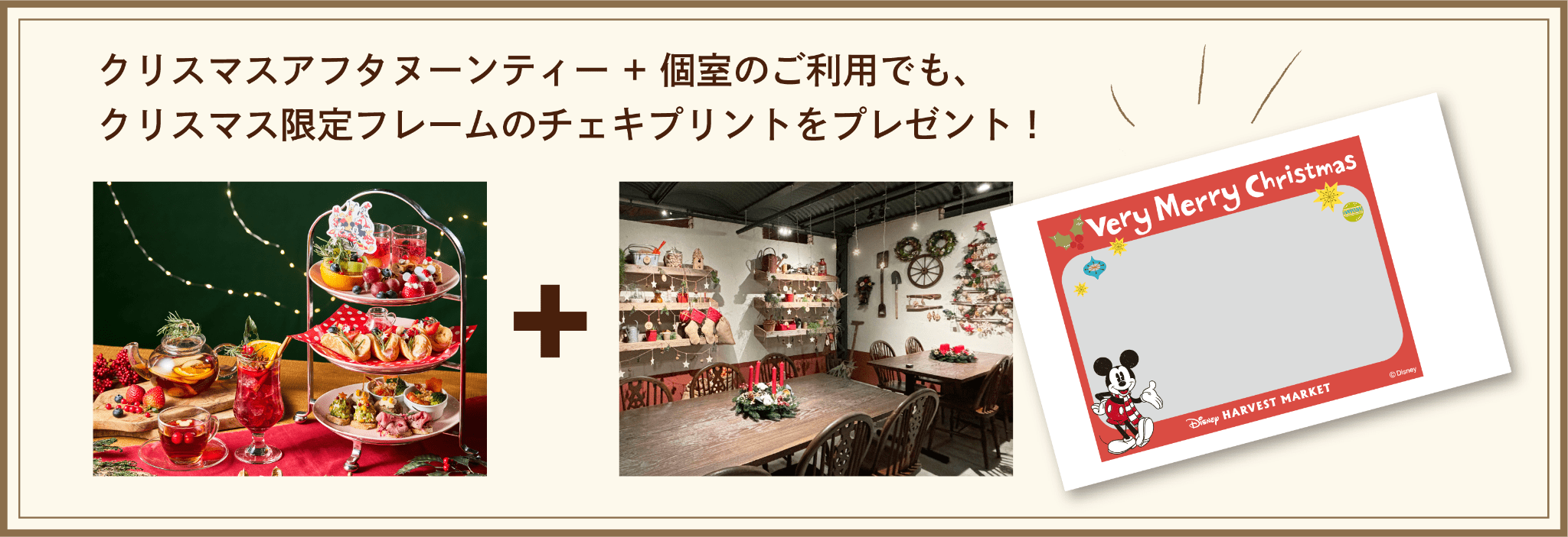 クリスマス期間中、個室のご利用+クリスマスアフタヌーンティーをご注文で、クリスマス限定フレームのオリジナルチェキプリントをプレゼントいたします。