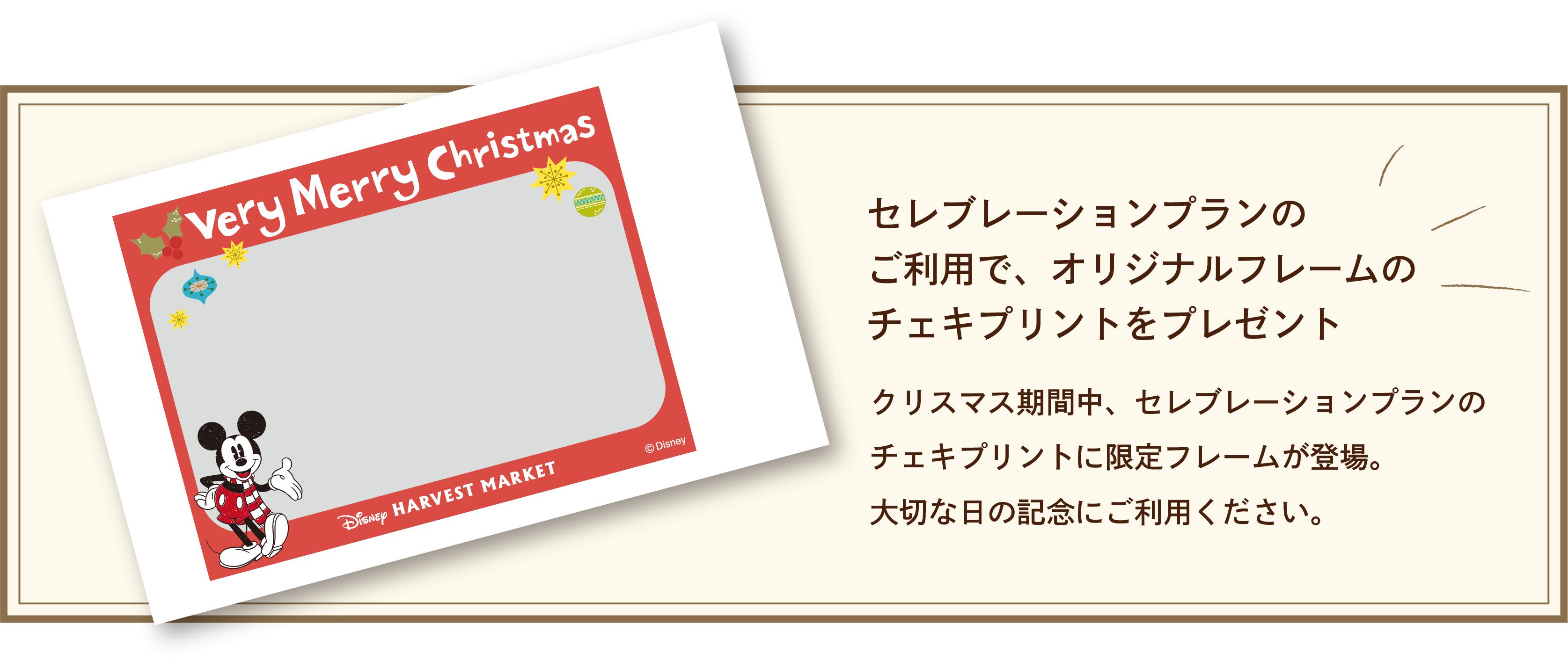 クリスマス期間中、グリーティングカードにお付けするチェキプリントで限定クリスマスデザインがお選びいただけます。