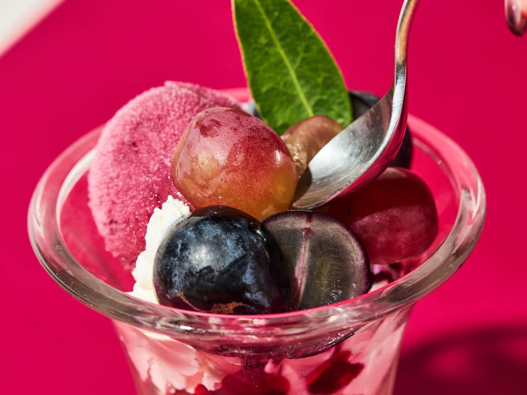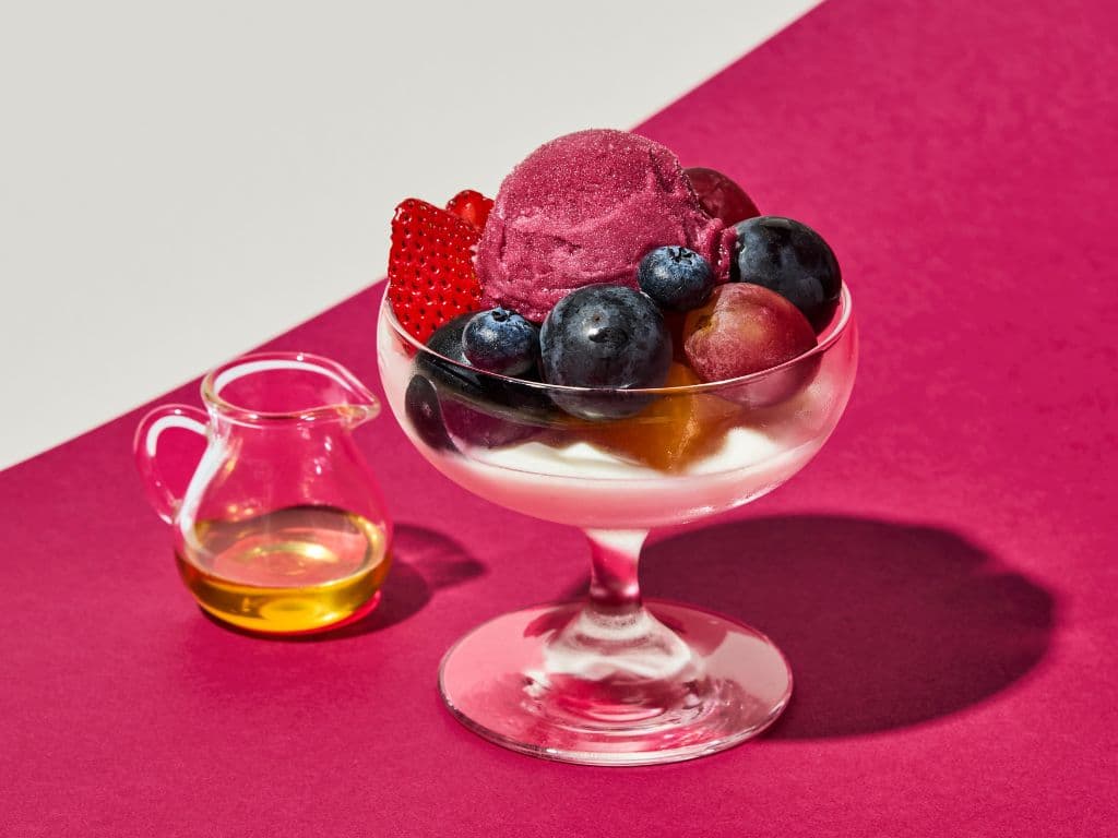 |  1,500円 (税込1,650円) ドリンク付 1,750円 (税込1,925円) | 葡萄のヨーグルトサンデーフルーツの彩りとヨーグルトの純白が美しく調和する、秋の一皿。巨峰シャーベットとフルーツの爽やかな酸味を、ヨーグルトの優しい口あたりが包み込みます。仕上げにははちみつをとろりとかけて、まろやかな甘さとともにお楽しみください。 |